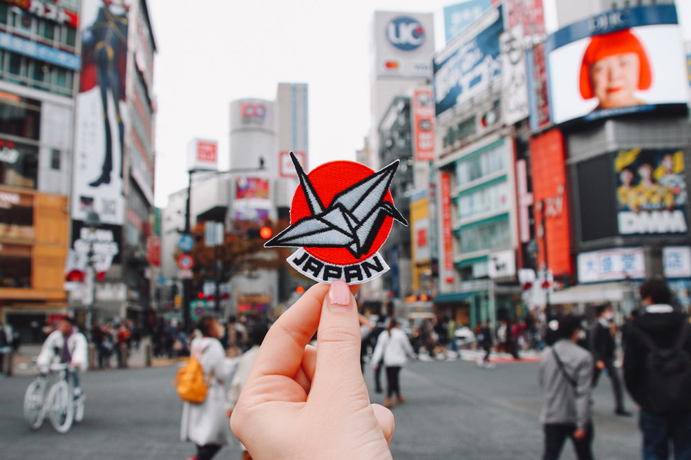 Our Japan design features the iconic Rising Sun from the Japanese flag and an origami crane.